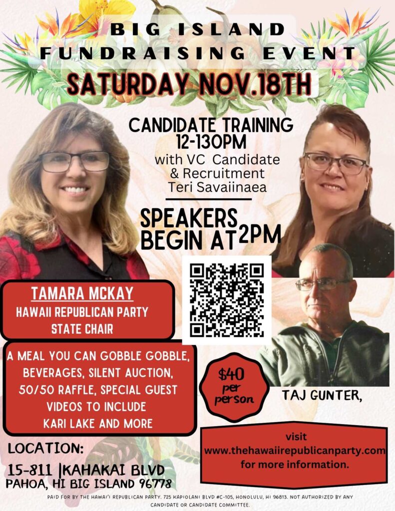 We are very excited to come and speak to members on the Big Island and speak to the issues that people have questions to regarding the party and our current state of affairs !