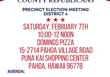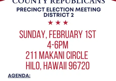 Your voice matters—be part of the process.Join us for the East Hawaiʻi County Republicans Precinct Election Meeting as we come together to elect leaders, plan ahead, and strengthen our community. […]