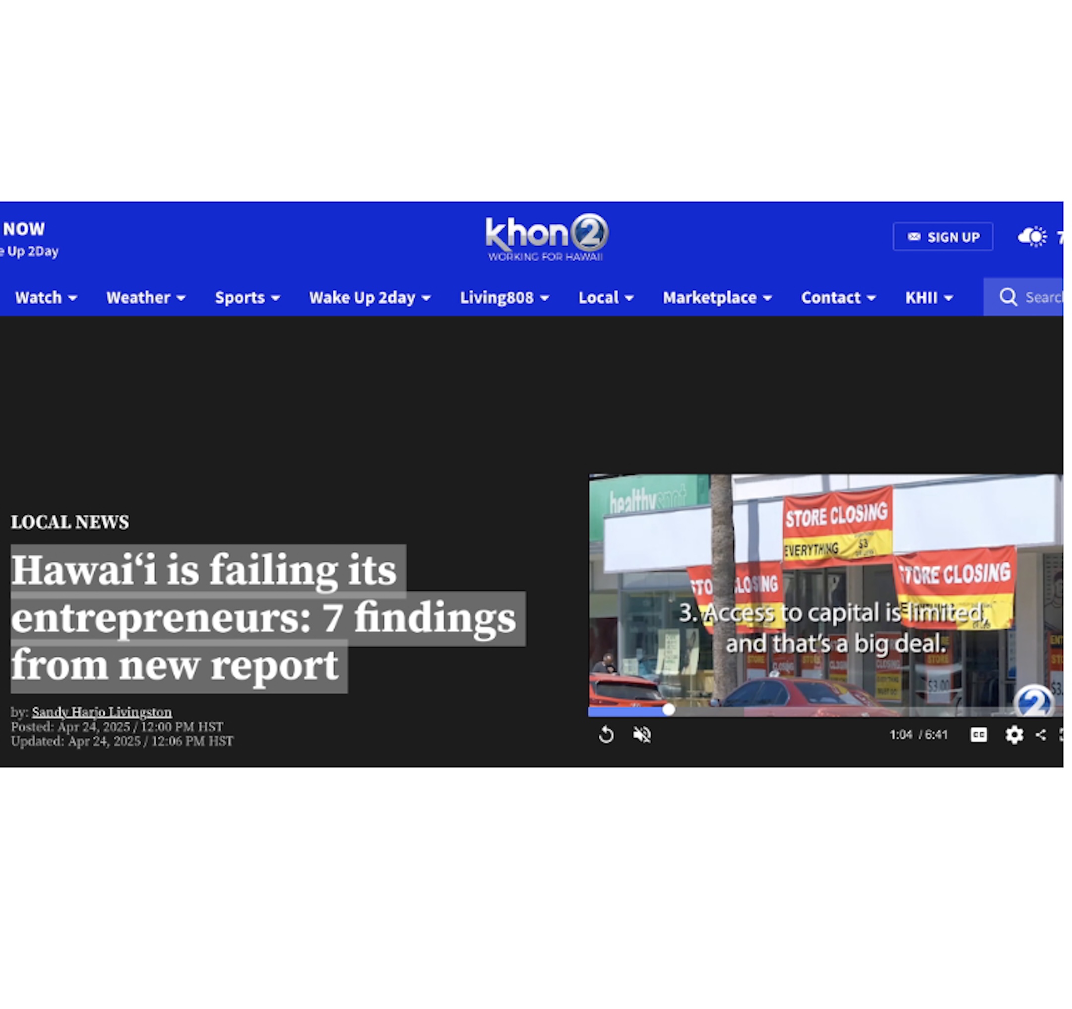 KHON-2 : Hawaiʻi is failing its entrepreneurs: 7 findings from new report