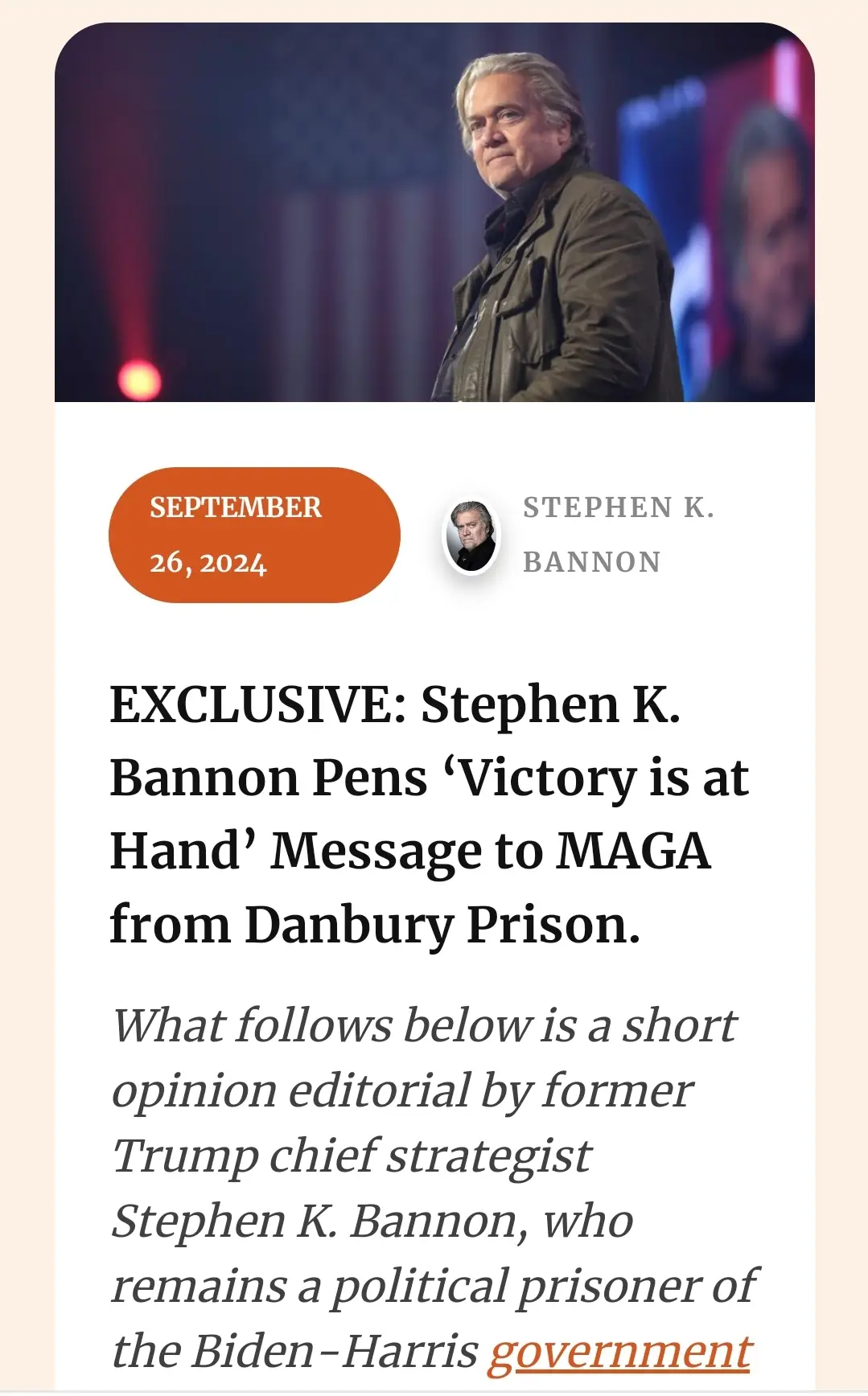Become a part of the history being made this election on November 5th join us at our rallies and celebrate our success! https://thenationalpulse.com/analysis-post/exclusive-stephen-k-bannon-pens-victory-is-at-hand-message-to-maga-from-danbury-jail/